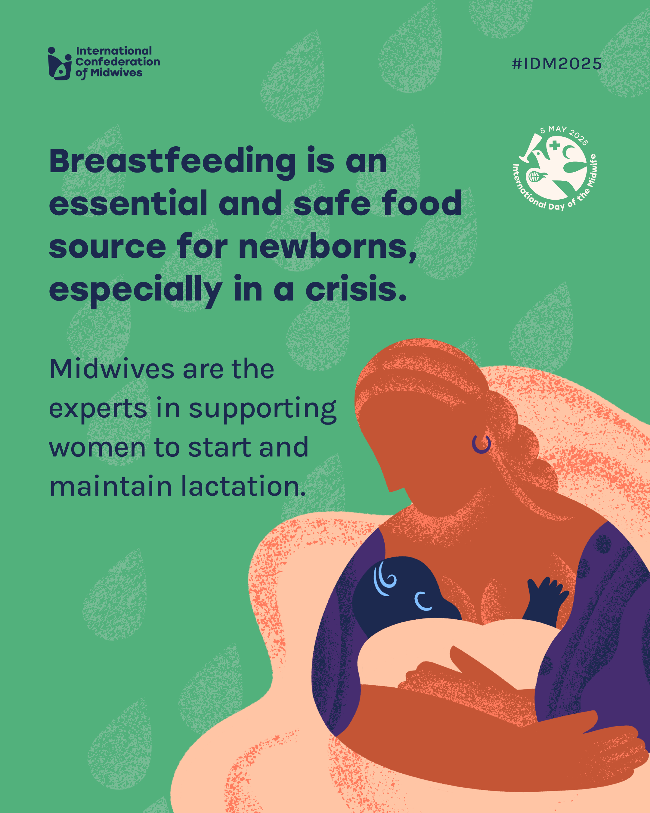 En situaciones de crisis, la lactancia materna proporciona a los recién nacidos una nutrición segura, limpia y confiable, crucial para la supervivencia. Las matronas desempeñan un papel clave en el apoyo a las madres para que inicien y continúen la lactancia materna, protegiendo la salud de los recién nacidos y reduciendo la mortalidad.