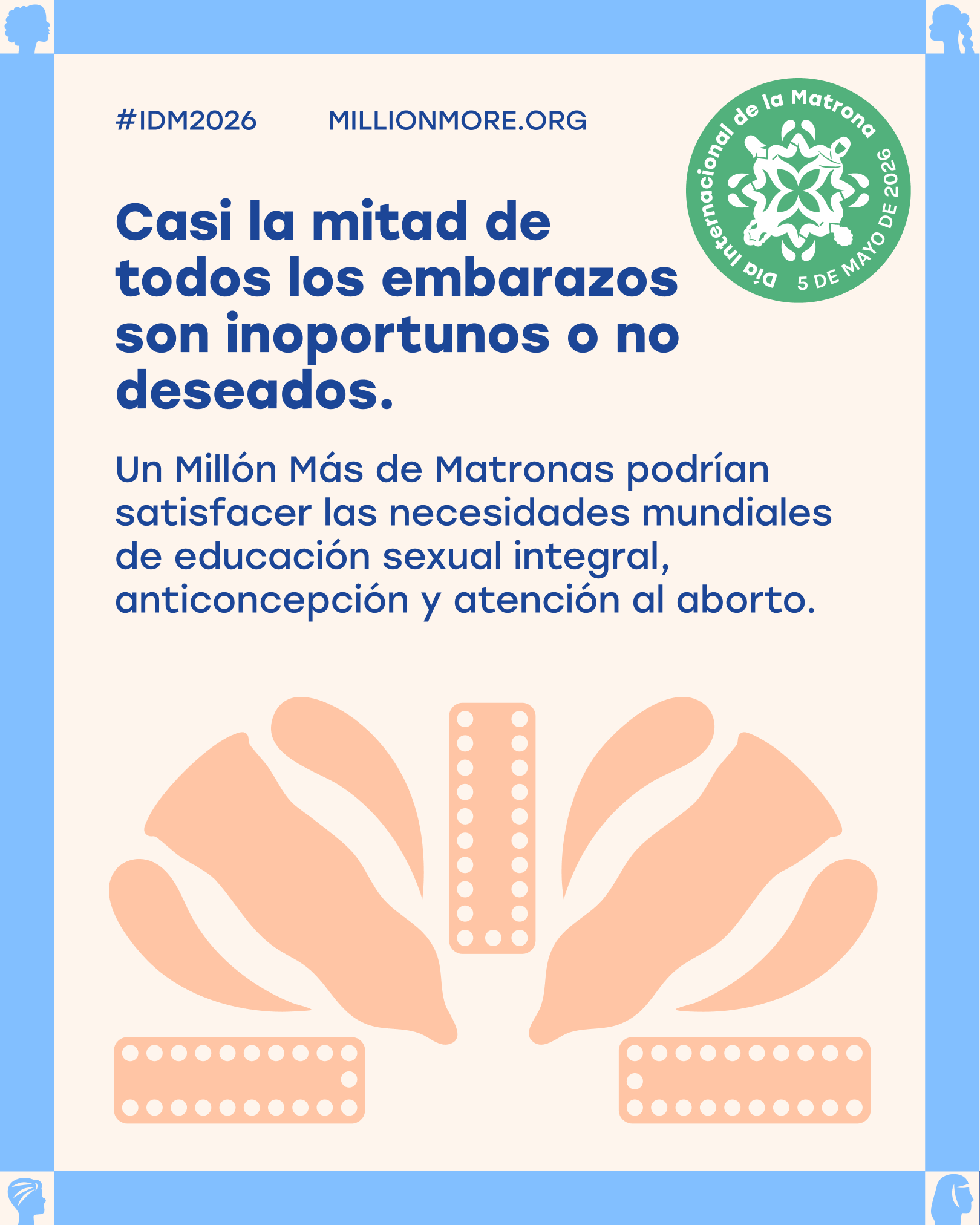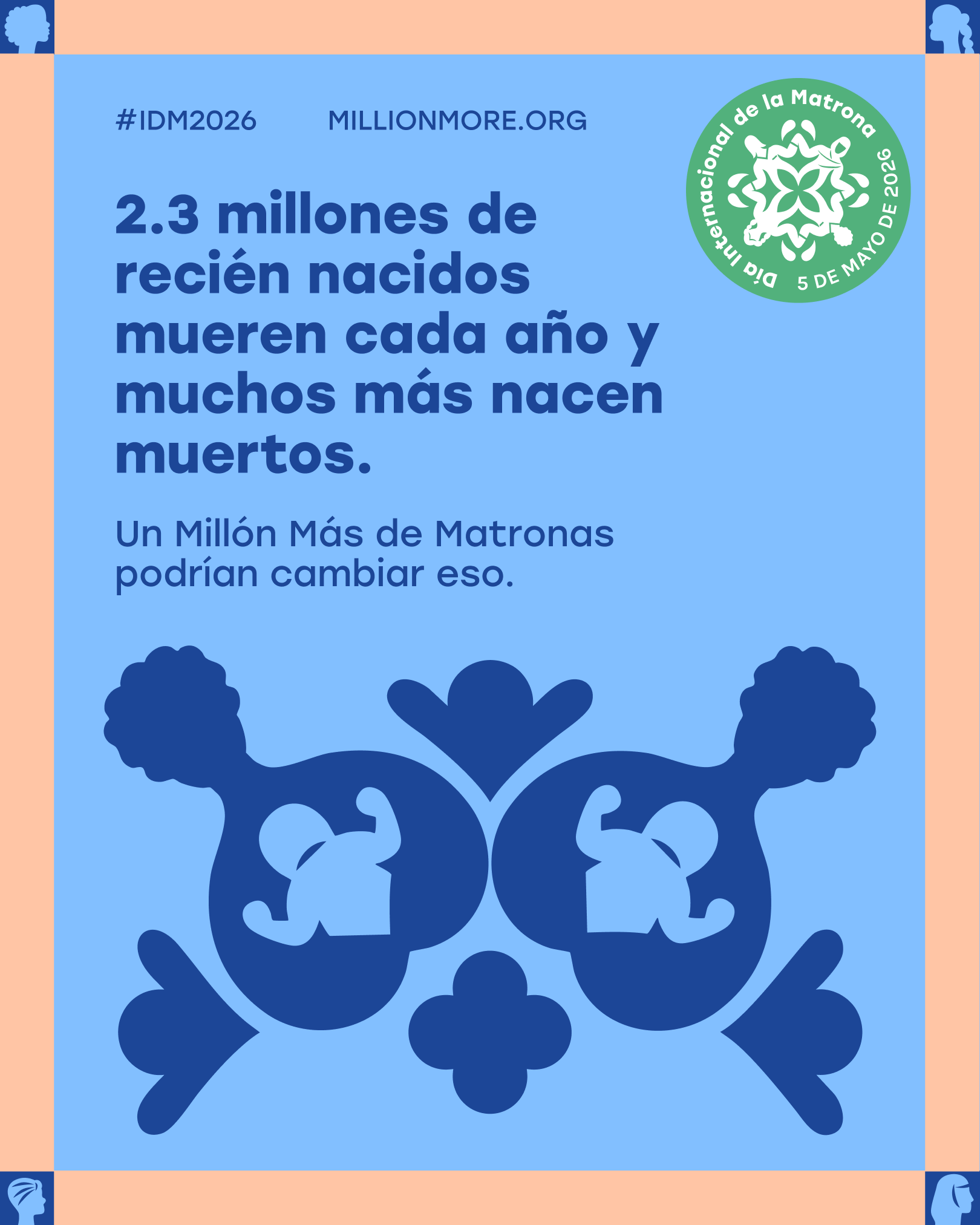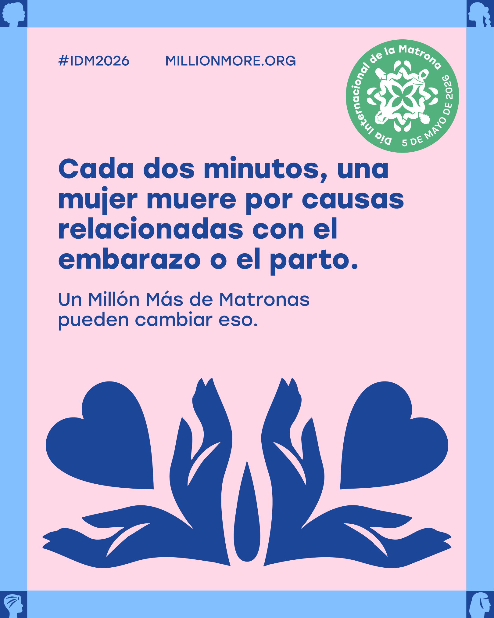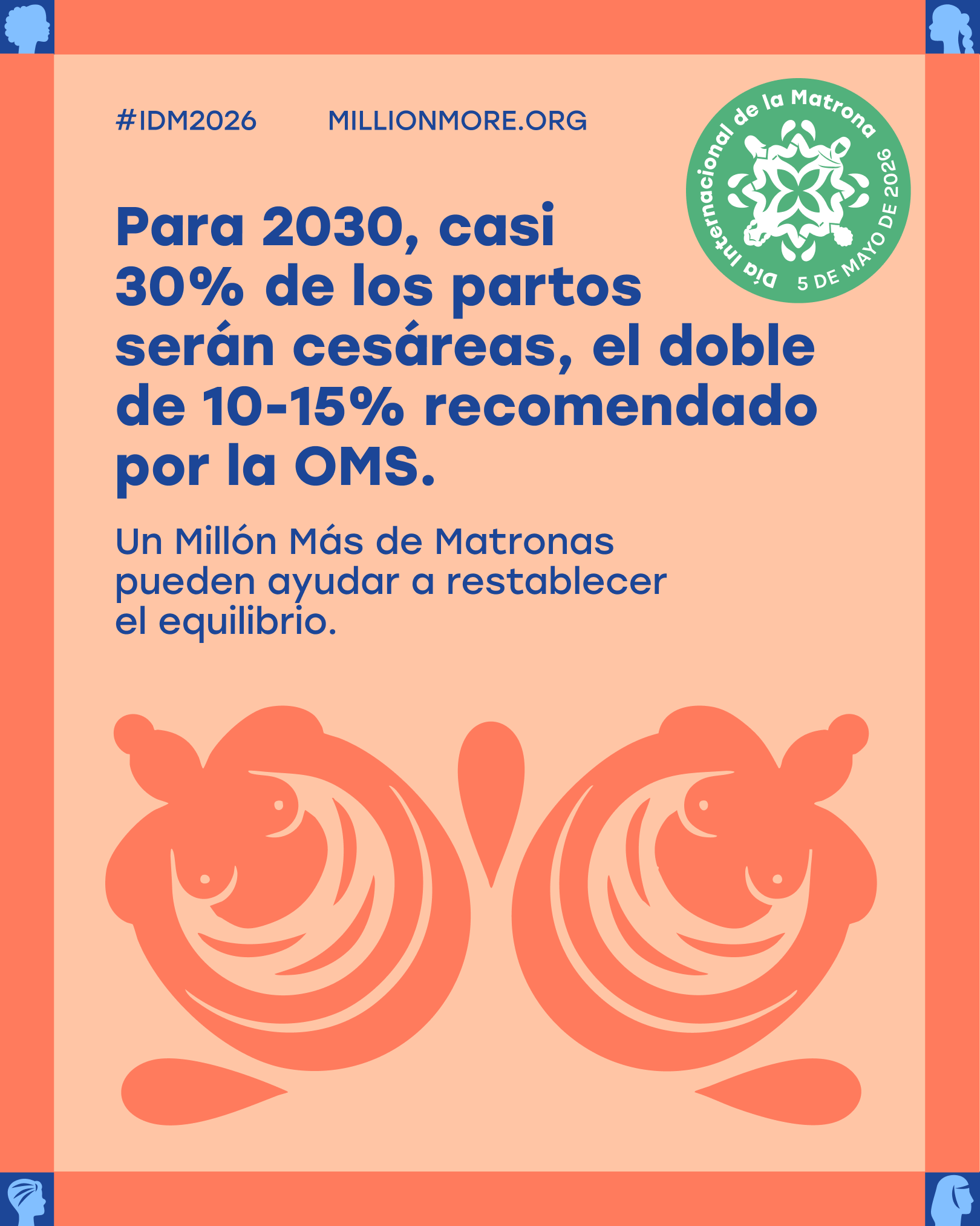 Hemos creado un conjunto de mensajes y gráficos listos para usar en las redes sociales para ayudarle a participar en el #IDM2026 y amplificar la petición de Un Millón Más de Matronas. Descargue los gráficos, copie los mensajes y compártalos en redes sociales antes, durante y después del 5 de mayo de 2026.