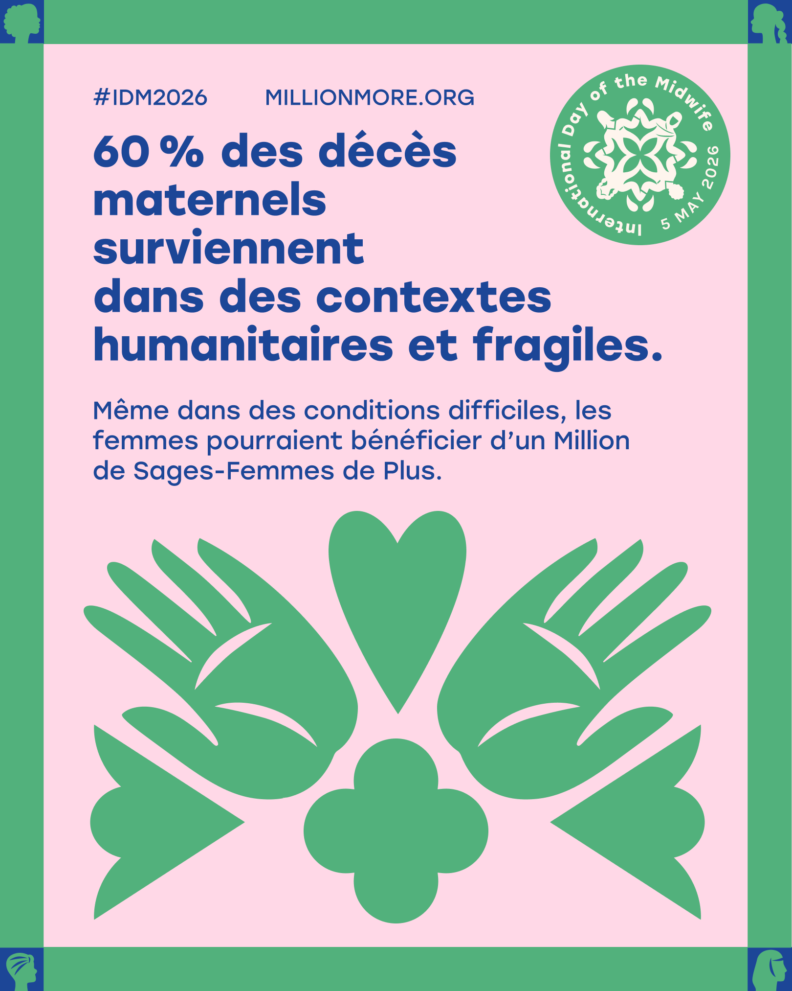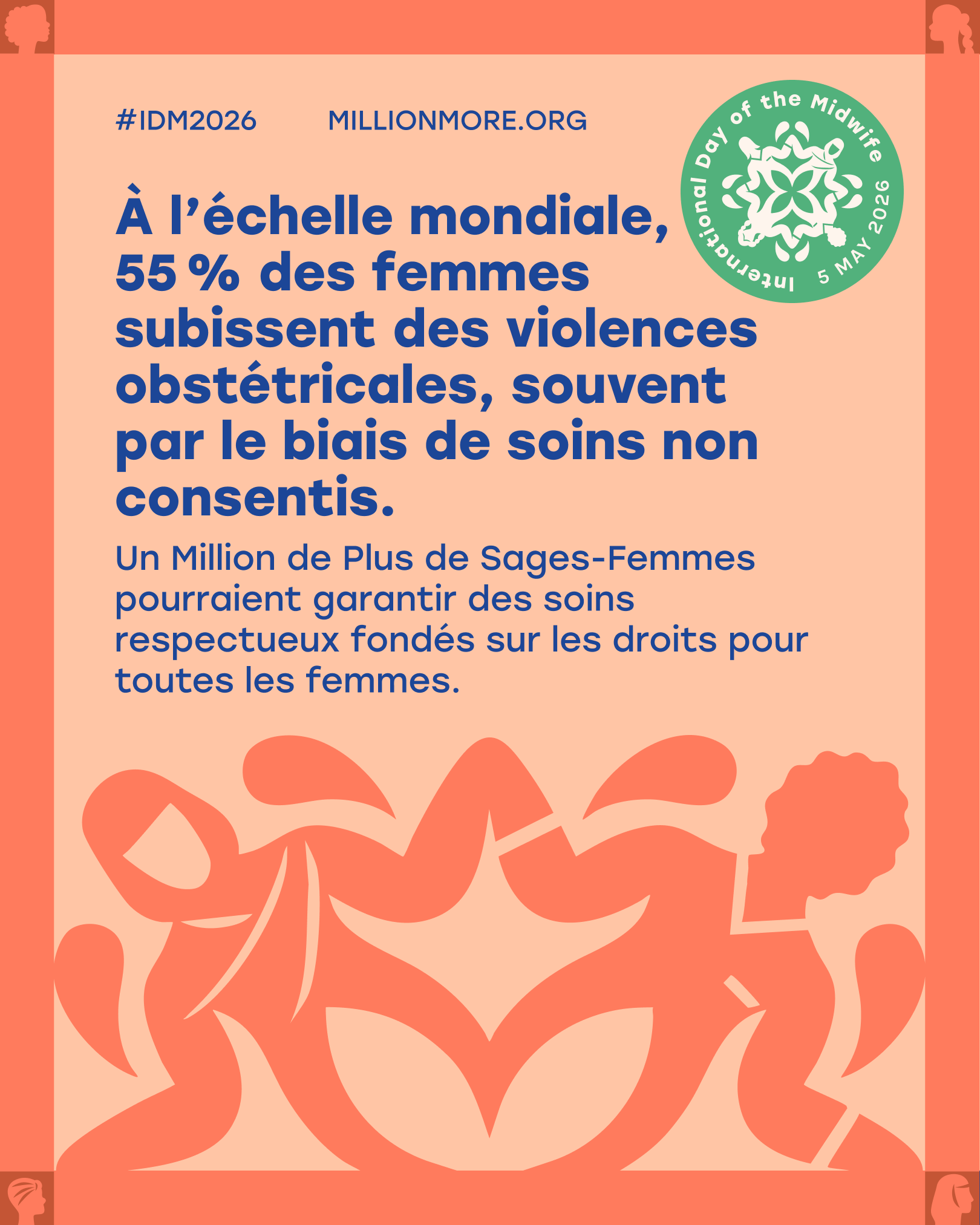 À l’occasion de l’#IDM2026, rejoignez-nous pour appeler #UnMillionPlus de sages-femmes et assurer des soins pour toutes les femmes, partout dans le monde.